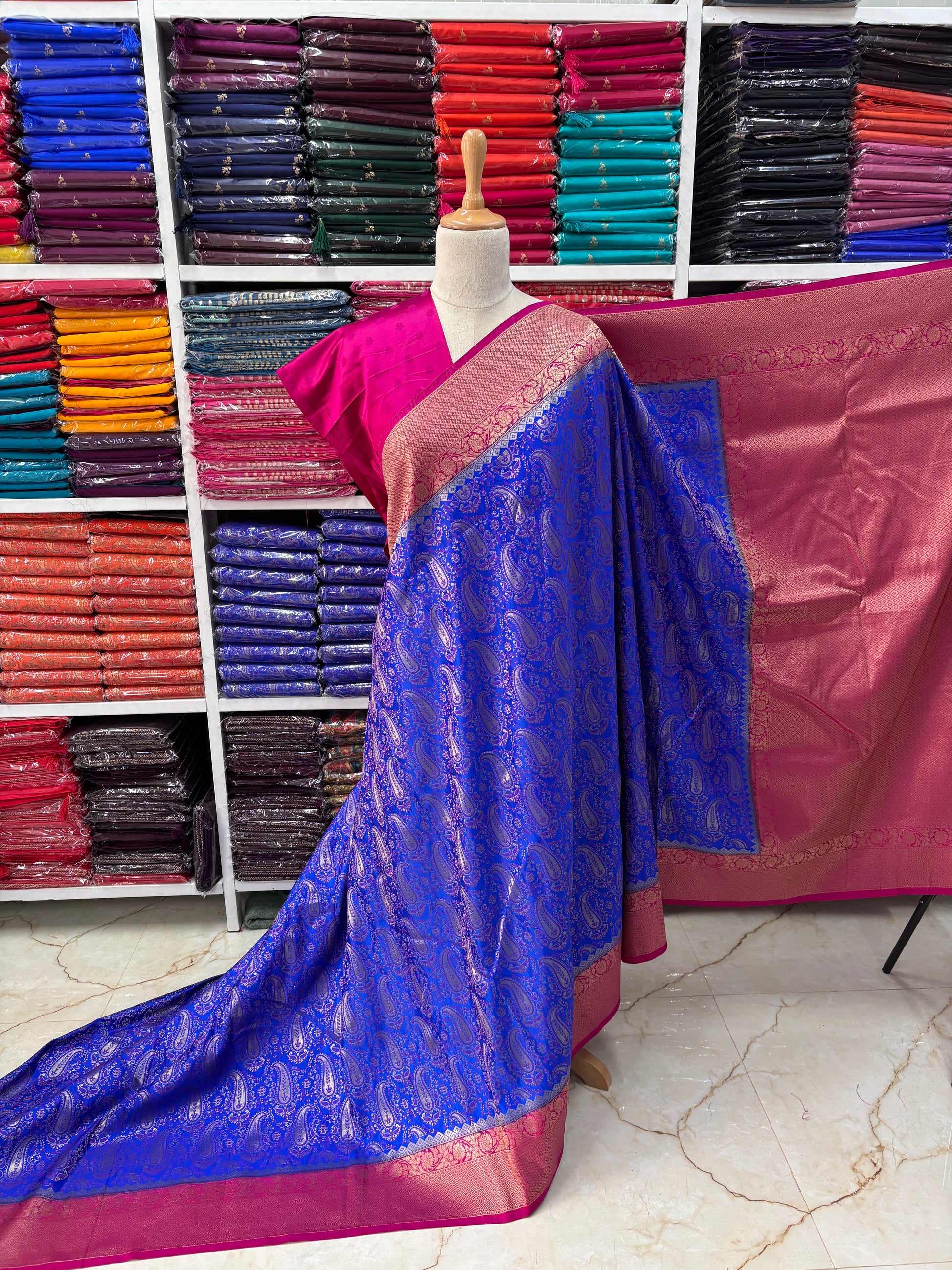 Brocade Semi Mysore Crepe (Meena with Banarasi Border)