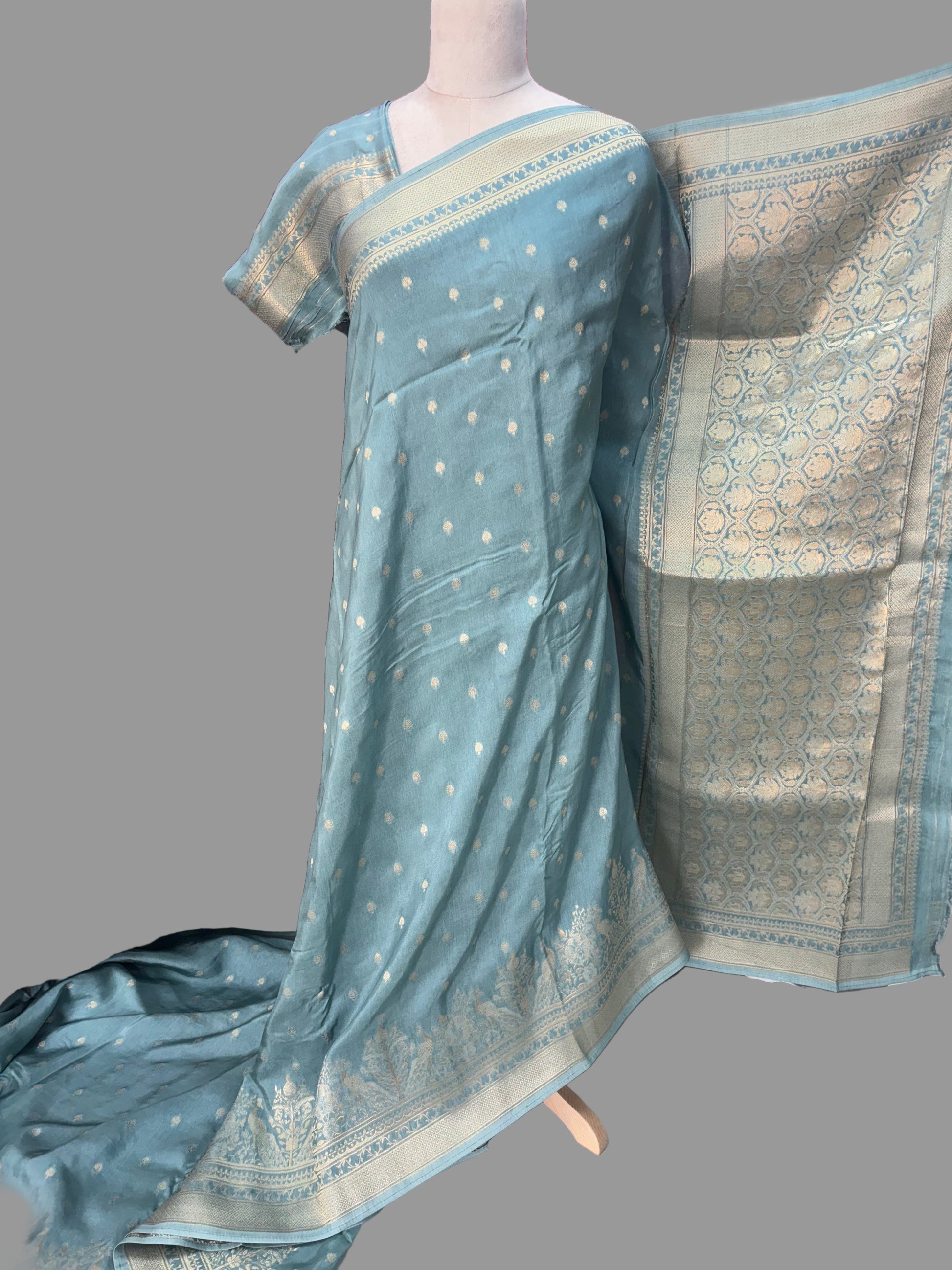 Banarasi Viscose Saree (Premium, Motifs Body, Peacock Border)