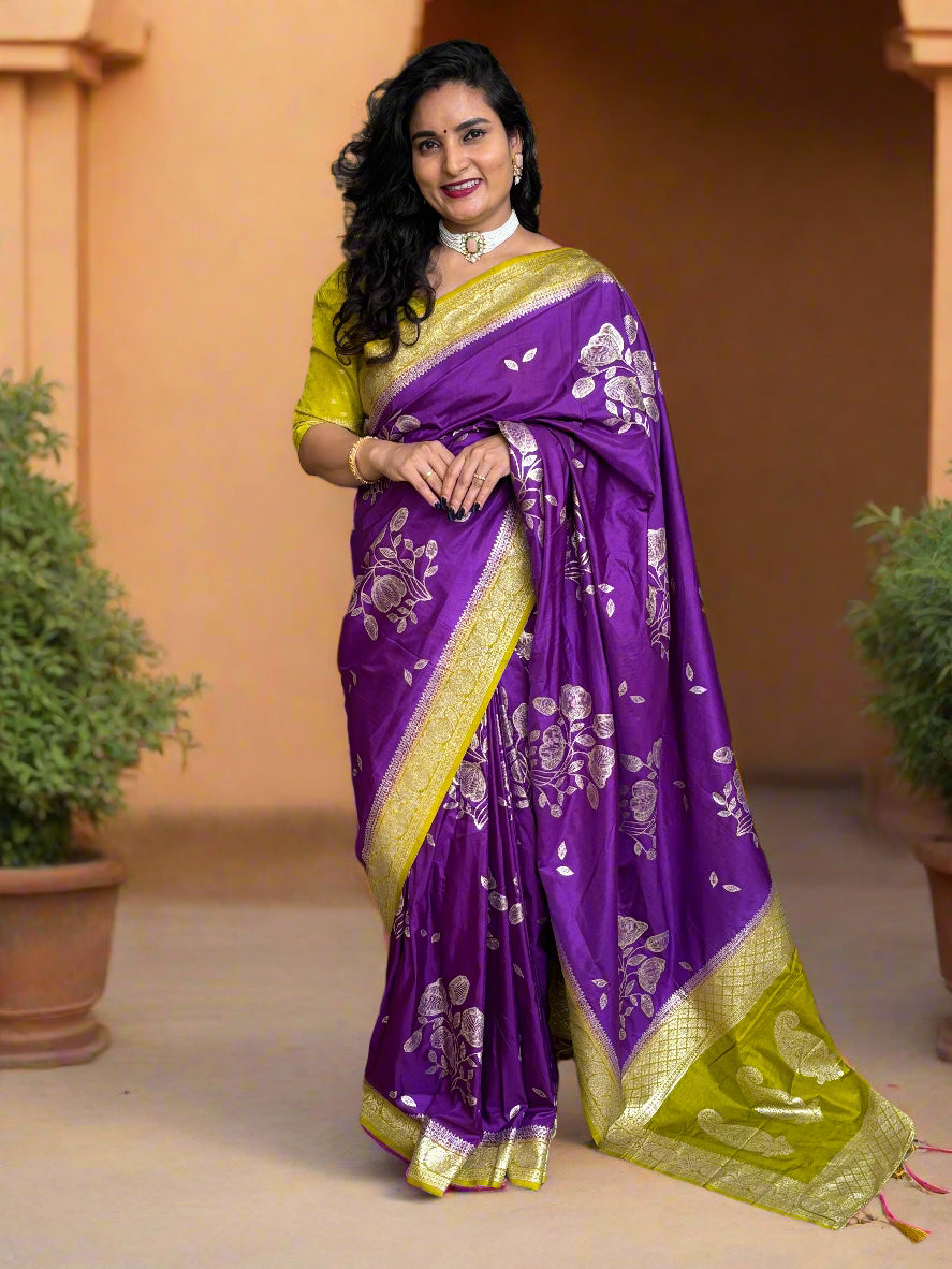 Dola Silk (Floral weaves and Mango Design Pallu)