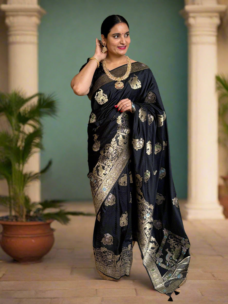 Embossed Crepe (Grand, Elephant and Peacock Meenakari Motifs)