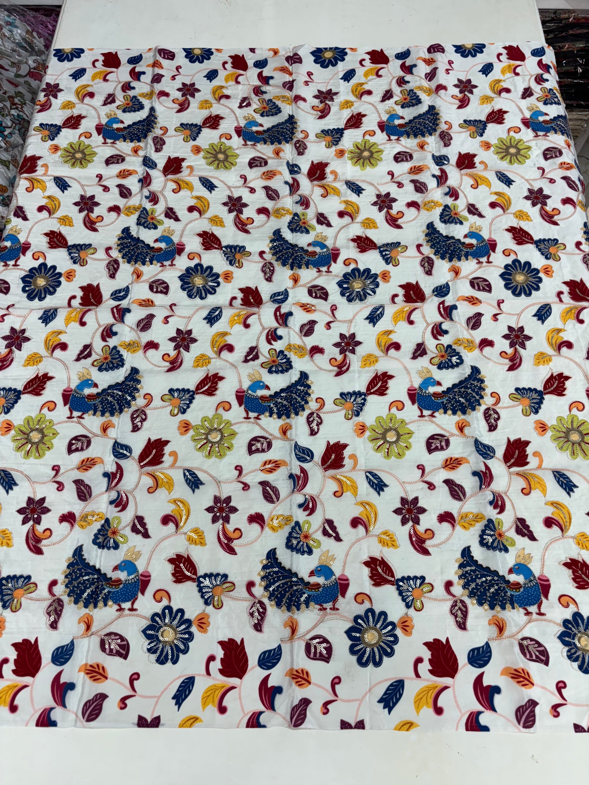 Kalamkari Blouse Fabric (HSSB1, Peacock Print with Light Positioning Work)