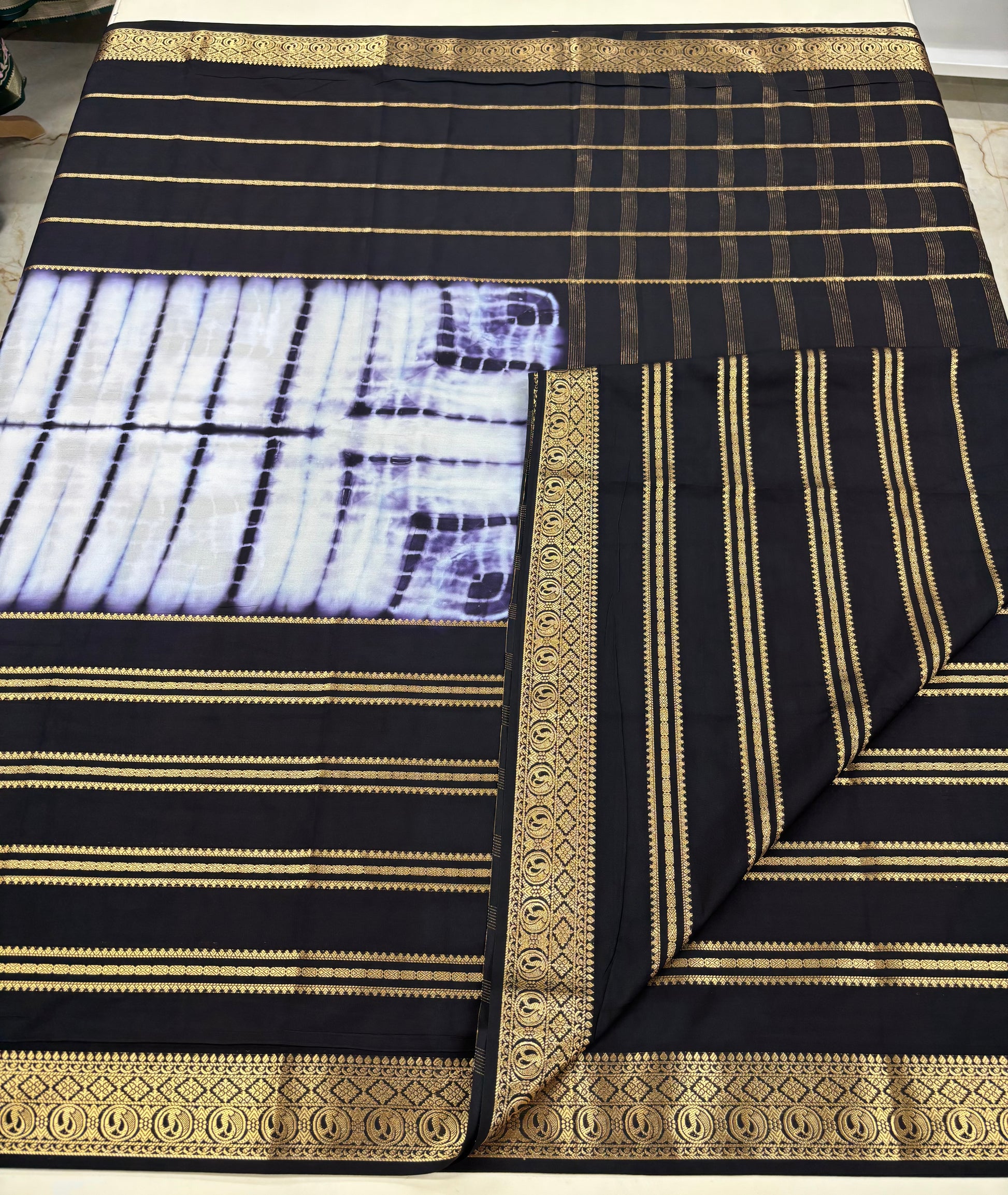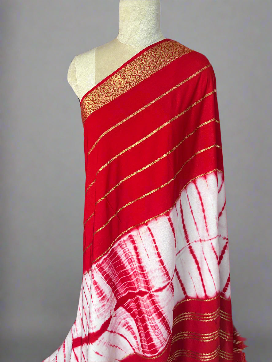 Semi Mysore Crepe (Shibori Dyed 2D, Golden Zari Horizontal Lines)