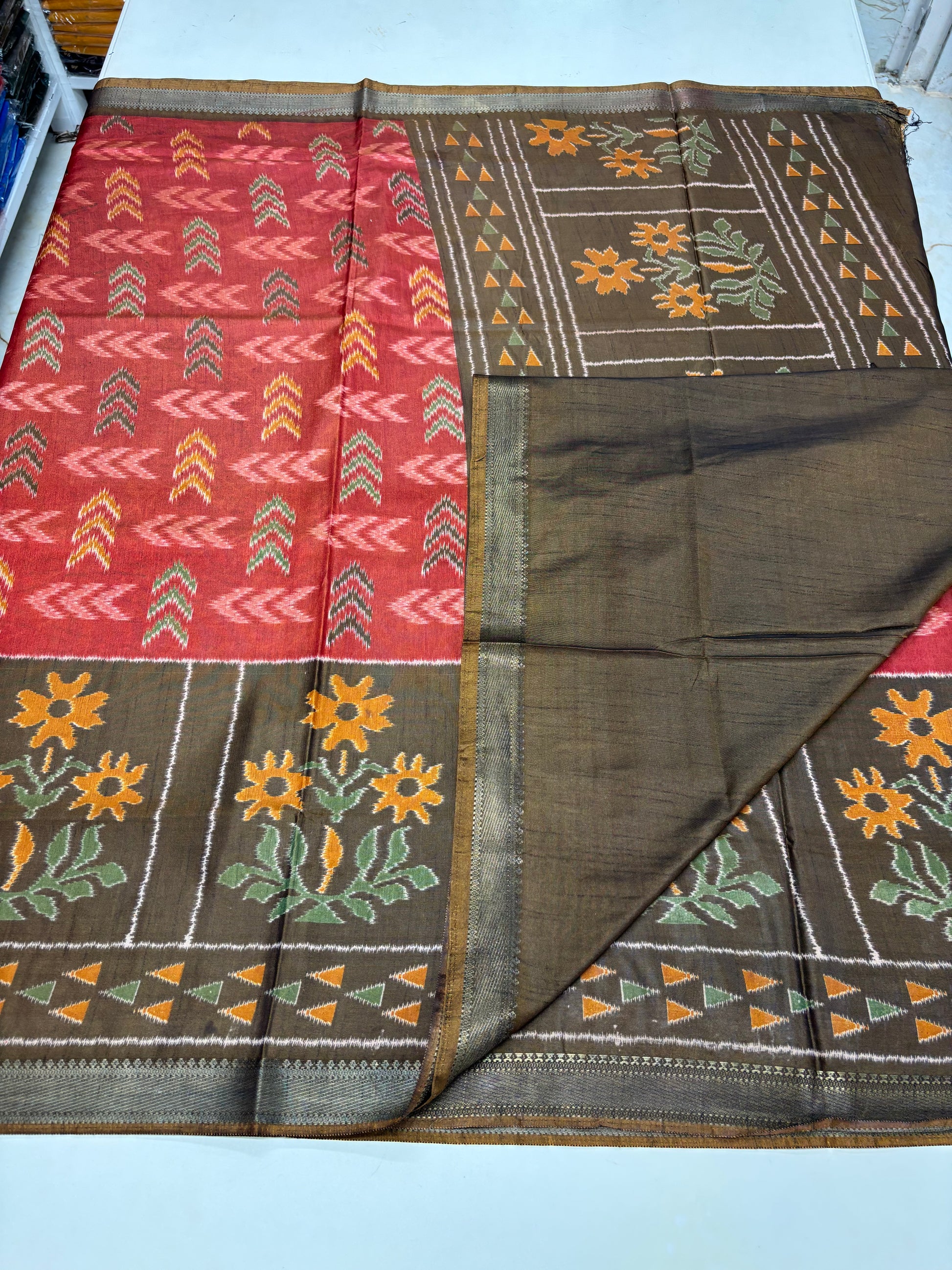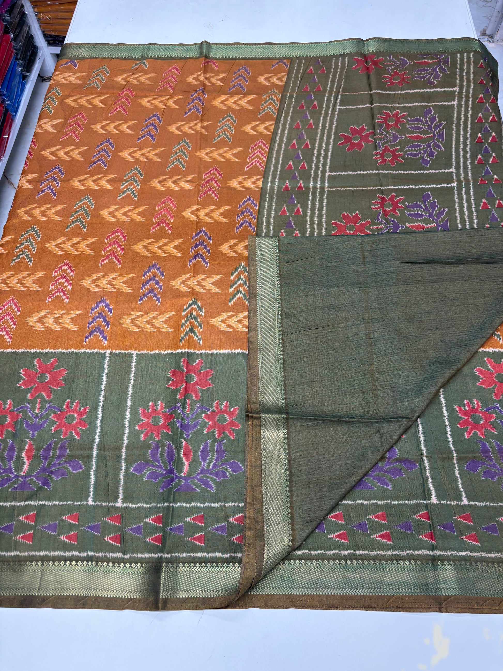 Semi Patola Saree (Arrow and Floral Design)